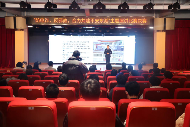 新闻网讯(记者田莉)12月23日下午,“防电诈、反邪教,合力共建平安东湖”主题演讲比赛决赛在我校大学生活动中心举行。东湖风景区工委委员、管委会副主任夏喜平、管委会宣传部部长周敏、管委会政法综治办主任罗绯、城乡工作办事处书记万明亮、东湖公安分局副局长徐恒久,我校党委副书记肖军出席活动。我校经济与管理学部2020级人力资源1班学生陶虹宇荣获演讲比赛二等奖。