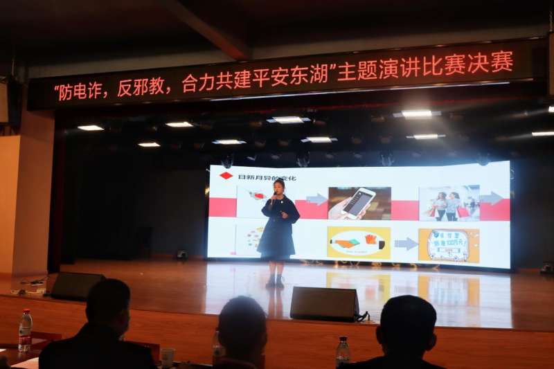 本次比赛由东湖生态旅游风景区管委会主办,区政法综治办、区公安分局承办,我校协办。由第十六届武汉市人大代表张蕊、第十六届区人大代表赵红娥等10人担任评委。来东湖风景区社区工作人员、企业员工代表、反诈志愿者、高校学生代表、公安分局民辅警等60名参赛选手,经过预赛激烈的竞演较量,10名高分选手脱颖而出进入决赛角逐。10名选手精彩的演讲引起了现场观众强烈共鸣,赢得阵阵热烈的掌声。经过激烈角逐,一、二、三等奖新鲜出炉,来自东湖印象白马驿站的参赛选手张横喜获大赛一等奖;东湖公安分局落雁派出所社区民警喻婷、我校经济与管理学部学生陶虹宇荣获二等奖;磨山社区网格员涂元、东湖景园社区居民姜姗、东湖绿道运营管理有限公司双语导游孙丽荣获三等奖。比赛在我校学生艺术团合唱队表演的反诈歌曲《平凡之路》中结束。