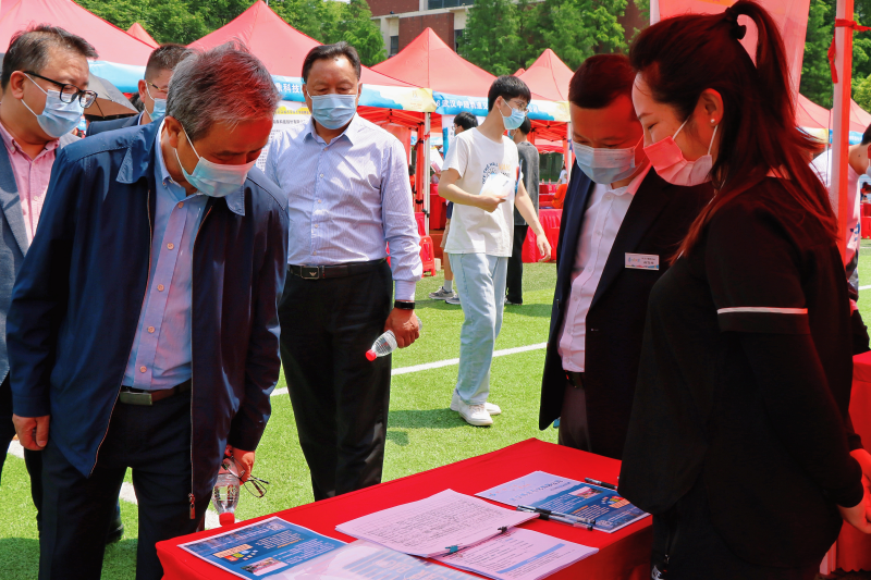 为积极应对疫情影响,抢抓高校毕业生求职关键期,帮助2022届高校毕业生顺利就业,5月9日,教育部启动2022届高校毕业生就业促进周,在全国范围内集中开展专场招聘和供需对接等活动。我校积极响应教育部2022届普通高校毕业生就业创业促进活动,5月5日至今,充分利用就业信息网等渠道,积极开展空中双选会、线上招聘会,与毕业生就业工作进行专项对接。5月17日召开“青山有约 未来可期”线下招聘会,积极动员合作单位、校友企业、招聘机构参会,充分挖掘市场化岗位资源,为毕业生提供丰富优质的就业岗位信息,全力推进毕业生就业工作。