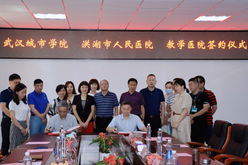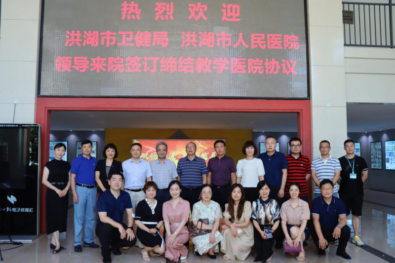新闻网讯(通讯员刘书翔 廖袁钰 摄影袁晚露)为实现以教促医,加强临床教学,6月30日上午,我校与洪湖市人民医院在行政楼A315会议室举行教学医院签约仪式。洪湖市卫健局党组成员、副局长苏彩雄,洪湖市人民医院党委书记戴百良,院长饶正寿,副院长张莉、苗万青一行11人,我校院长陈建勋,副院长赵光红,医学部主任罗健,副主任肖琛嫦、杜征帆及相关职能部门负责人出席仪式。罗健主持签约仪式。