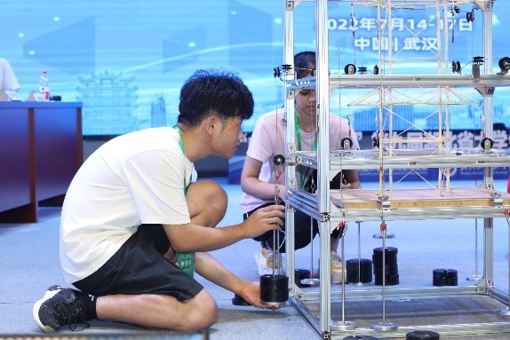 面对激烈的竞争,我校队员们沉着应对,在16个小时内完成模型制作、尺寸检测,顺利通关进入加载环节。