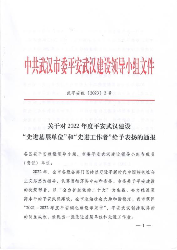 新闻网讯(记者袁晚露)近日,武汉市公安局发布《关于对2022年度平安武汉建设“先进基层单位”和“先进工作者”给予表扬的通报》,我院获评2022年度平安武汉建设“先进基层单位”。3月9日上午,武汉市公安局文化保卫局局长薛涛,武昌工作站站长刘俊、民警梅凡专程来我院送表彰文件。院长陈建勋、党委书记肖军、副院长彭邦银热情接待薛涛一行,并在行政楼A315会议室展开座谈。