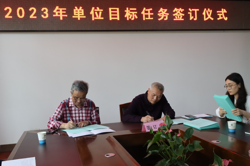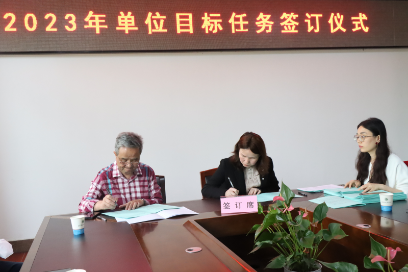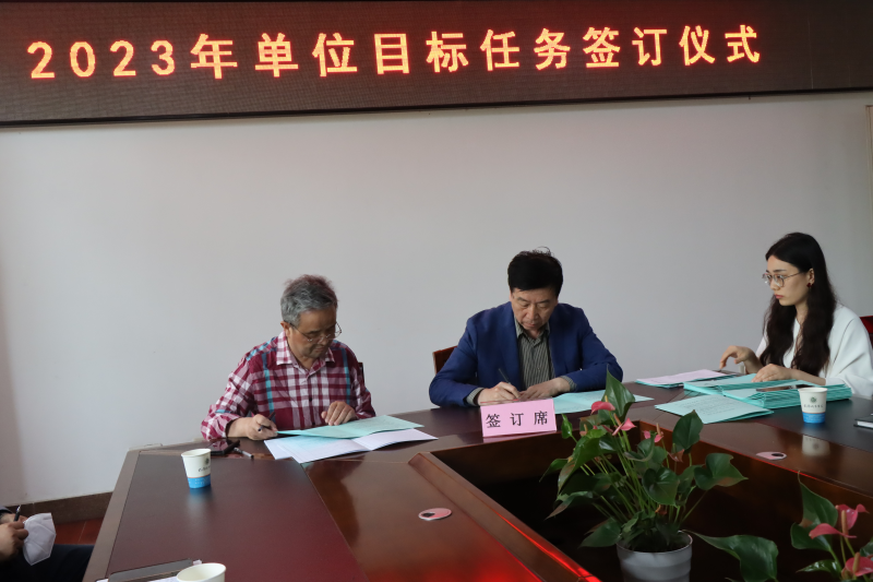 陈建勋代表学院与各职能部门负责人、各学部主任签订2023年单位目标任务书。