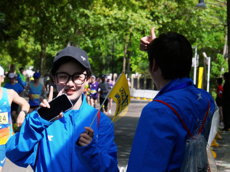 佟侗介绍说,当时参与报名的学生多达540人,经过几轮面试,最终选中240人。佟侗非常热爱志愿服务工作,她表示,“微笑是汉马志愿者最美的名片!有我们在,请放心跑!”。