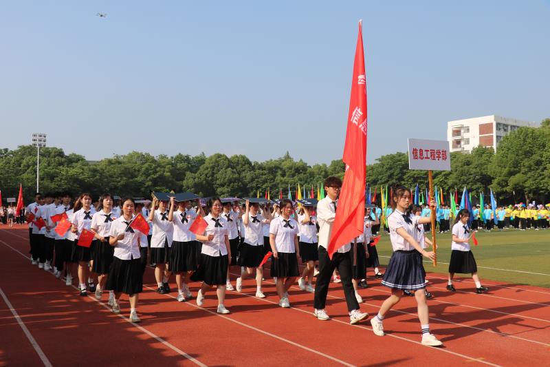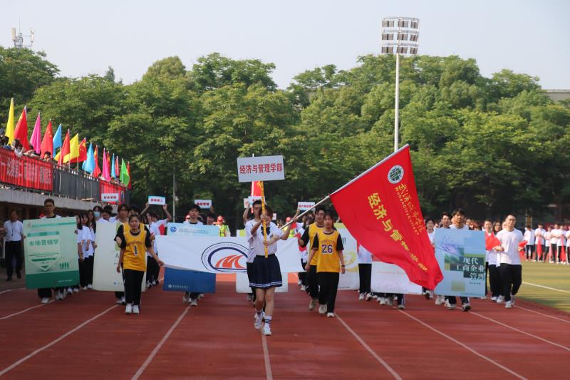 肖军在开幕式上致辞。他代表学院对本届运动会顺利召开表示热烈祝贺,并向全体运动员、裁判员和为运动会积极筹备而付出辛勤汗水的工作人员表示亲切问候。肖军表示,体育是德智体美劳“五育融合”人才培养的重要一环,是实现立德树人根本任务的基础性工程,是素质教育的重要方面。体育运动不仅可以增强人们体质,也有助于培养勇敢顽强的性格、超越自我的品质和勇于挑战的意志,有助于培养竞争意识和团结协作精神,对丰富校园文化生活,弘扬爱国主义、集体主义精神,增强国家和民族的向心力、凝聚力起着不可缺少的重要作用。学院历来高度重视学生体育运动,建有体育类学生社团16个、阳光体育俱乐部11个,还有8个校级体育代表队。校园体育文化节,“新生杯”、“院系杯”篮球赛、乒乓球赛、羽毛球赛、趣味运动会等体育赛事活动,极大地丰富了学生校园课余生活,打造出了学院的“校园体育运动”特色。希望学生们积极响应“每天锻炼一小时,健康工作五十年,幸福生活一辈子”的号召,走下网络,走出宿舍、走向操场,把汗水洒向运动场上,把矫健身影留在竞赛比赛中,将勇往直前、顽强拼搏、精诚团结、锐意进取的体育精神变成促使我们不断成长的精神动力。
