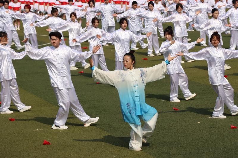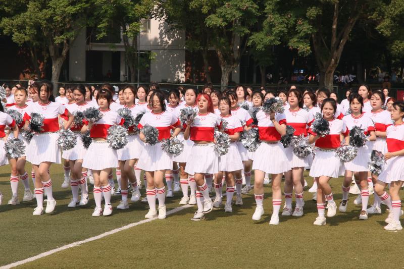 随后,身着统一服装的红旗方阵、太极方阵、啦啦队方阵呈现了极富特色和精彩绝伦的表演,红旗飒飒整齐划一、太极拳如行云流水、健身操轻盈律动,为全院师生带来了一场异彩纷呈的视觉盛宴,将整个操场气氛不断推向高潮,操场上不断传来观众的欢呼声、喝彩声。