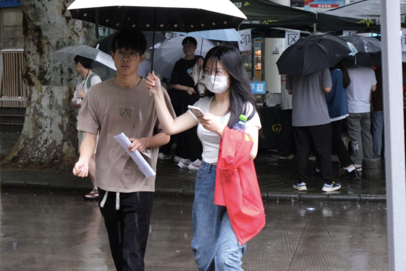 当日正午时分,雨势突然加大,热心的志愿者撑伞护送学生们前往献血准备棚,志愿者用自己的行动传递着爱的火炬。