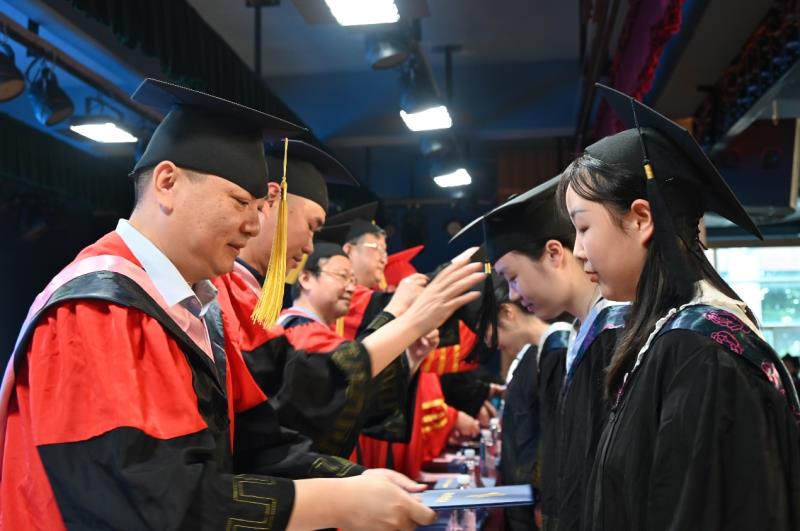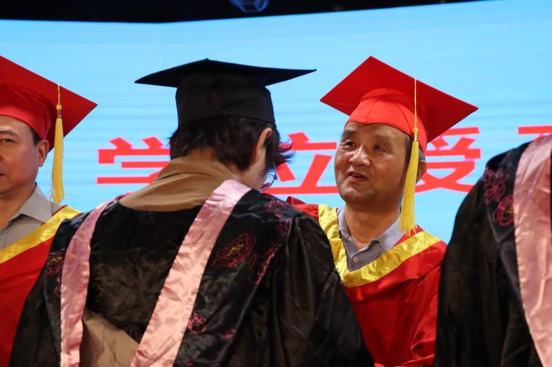 伴随着悠扬的旋律,2023届毕业生代表依次上台,院领导为毕业生颁发学位证书、拨穗正冠并合影留念。2023届毕业生大学四年划上圆满句号。