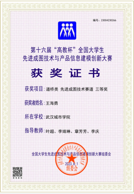 新闻网讯(通讯员李婧琳)近日,第十六届“高教杯”全国大学生先进成图技术与产品信息建模创新大赛总决赛在重庆举行。我院城建学部选派10名学生组成两支队伍(其中道桥类参赛队8人、建筑类参赛队2人)参加总决赛。经过激烈角逐,在国赛中获道桥类团体三等奖1项、道桥类个人全能三等奖3项、建筑类个人全能三等奖1项,获优秀指导教师三等奖。这是我院首次在该项赛事中获得国家级奖励,实现了历史性的突破。