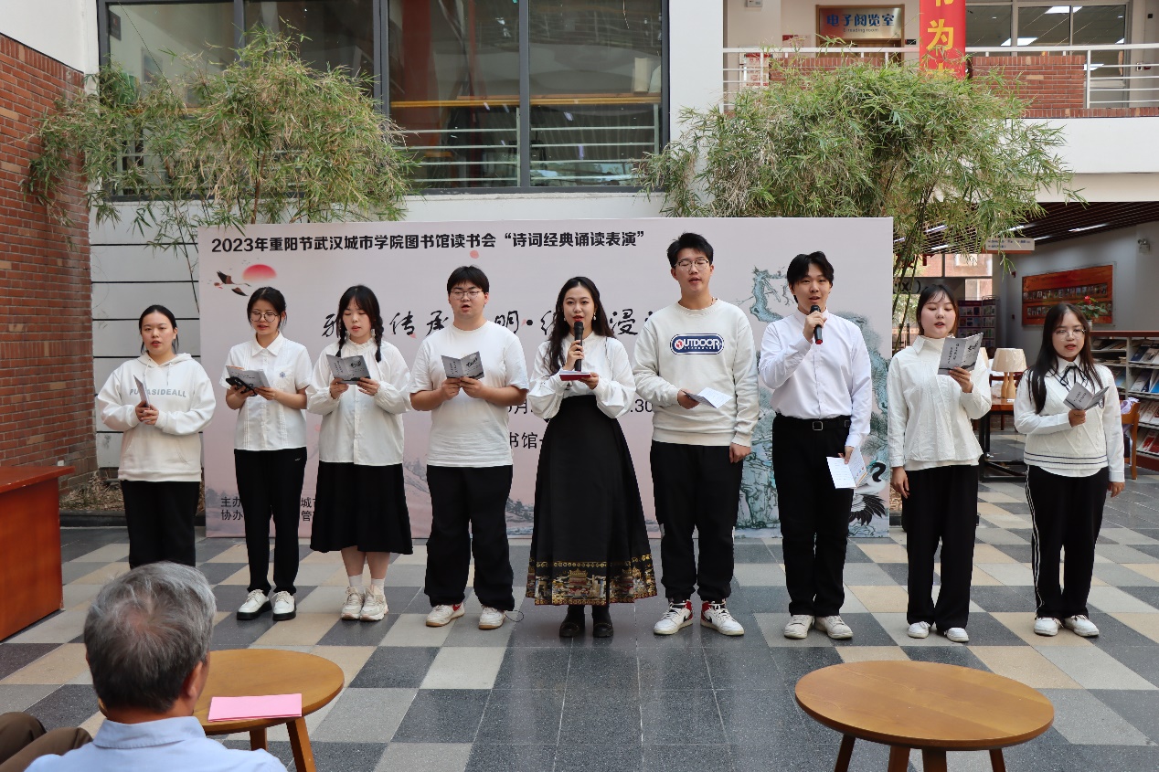新闻网讯(记者范玄浩 张佳鑫)浓浓的诗情画意,典雅的传统文化气息。10月23日中午,学院在图书馆一楼中庭举行“雅言传承文明 经典浸润人生”2023年重阳节读书会诗词经典诵读表演。院长陈建勋,董事会秘书方思清,学生工作处、党委组织部、党委宣传部负责人,图书馆直属党支部书记、图书馆各部门主任及学生代表参加活动。活动由外语学部2021级英语1班学生方雨佳主持。