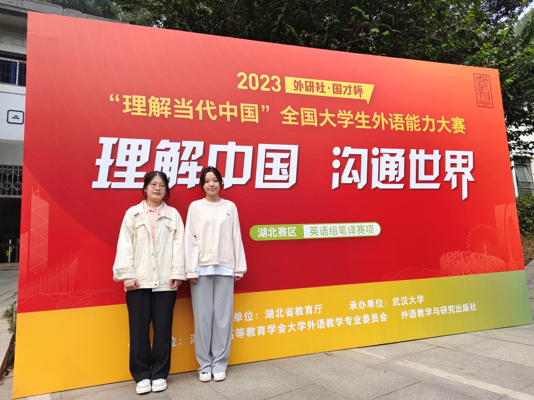 今年7月,湖北省教育厅下发《关于举办2023“外研社国才杯”“理解当代中国”全国大学生外语能力大赛(湖北赛区)的通知》,与以往不同的是,今年赛事中首次增加口译赛项与笔译赛项。自接到通知后,担任笔译赛项指导教师的罗璐与蔡新兴便积极在学部大三、大四的学生中展开宣传。在初赛进行前,两位指导教师为学生们整理了官方出题范围中明确指出的中华文化思想术语以及习近平新时代中国特色社会主义思想关键术语,让学生们在备赛的同时也能有所收获。两位教师按照外研社官方给出的比赛样题自拟试卷并于9月7日进行了校内初赛选拔,黄荷和吴依雯脱颖而出,晋级省赛。