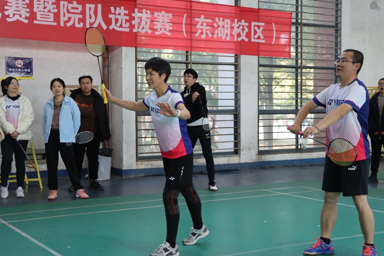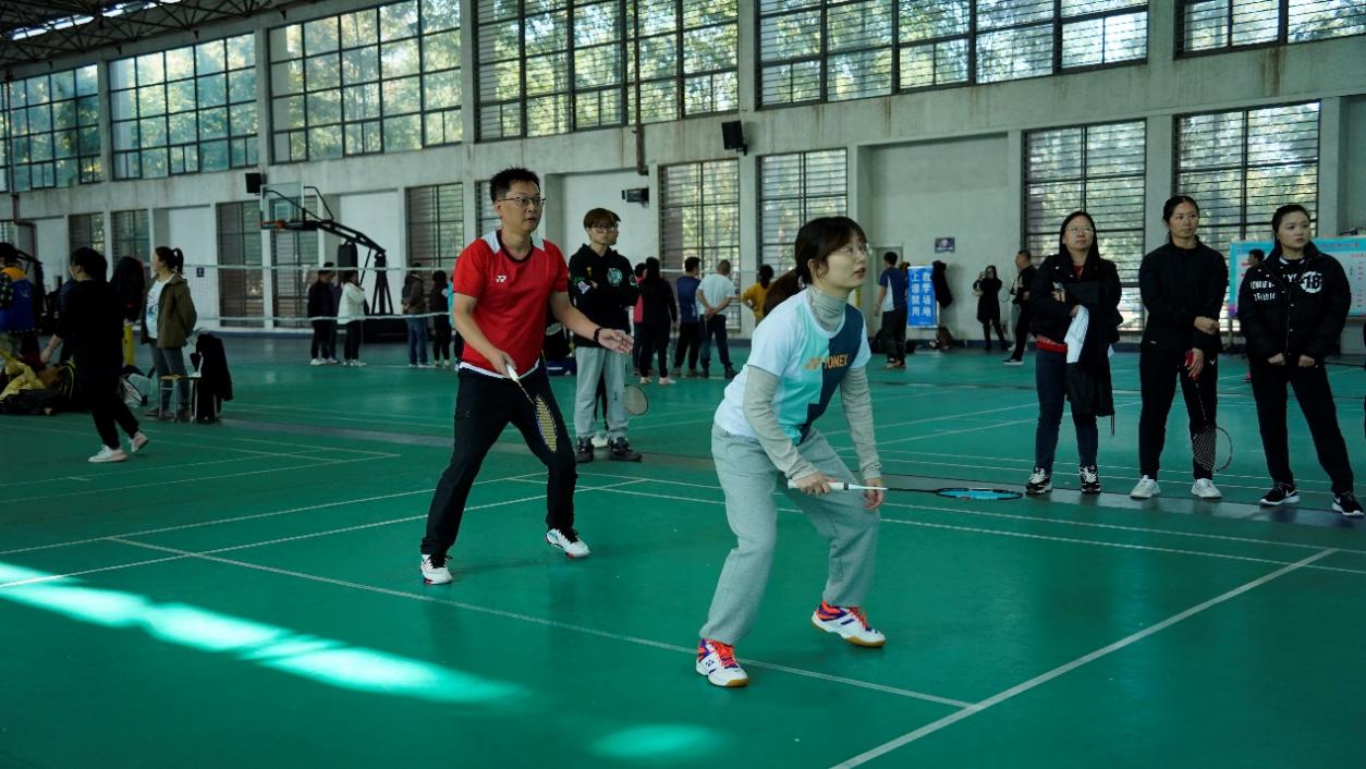 新闻网讯(高级记者张佳鑫 记者韦睿)为进一步加强校园文化建设,丰富教职工业余文化生活,提升教职工身体素质,11月13日,2023年教职工羽毛球比赛在体育馆二楼火热开赛。学院党委书记肖军、副院长徐东平、党委副书记李相朋现场观看首场比赛,工会主席吴翠红参加首场混双比赛。