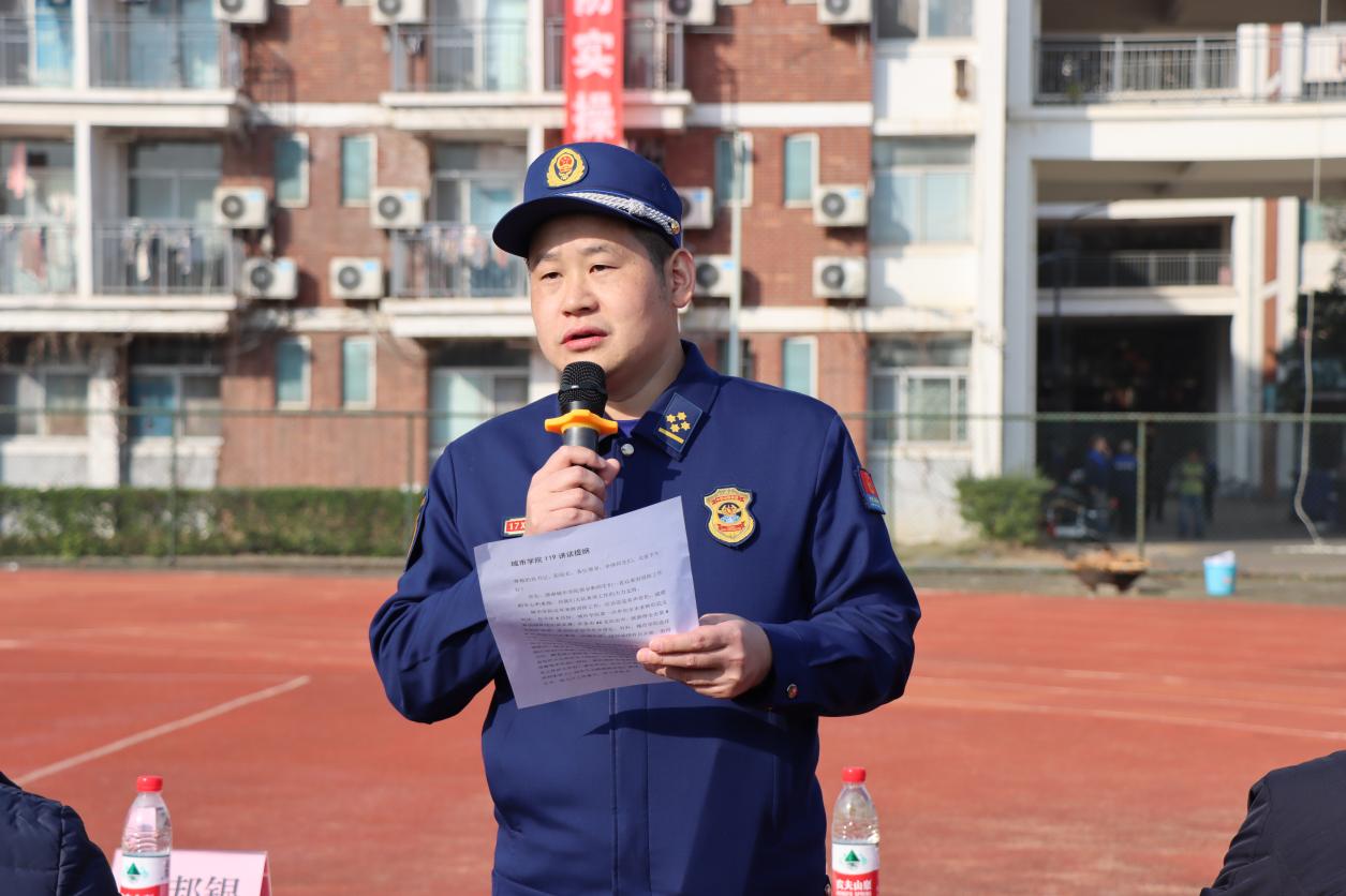 肖军宣布武汉城市学院2023年度消防演练活动正式开始。