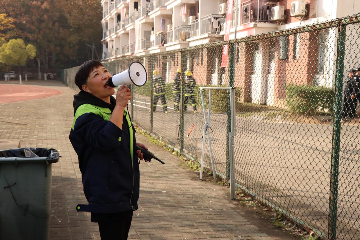此时,大部分学生已在宿舍管理员和保卫处工作人员的组织下有序撤离。然而,仍有两名学生被困在五楼。这两名学生情绪激动,大声呼救。物业宿管员见状,立即用高音喇叭向他们喊话:“请保持冷静,不要跳楼,救援即将到来。”稳定他们的情绪。