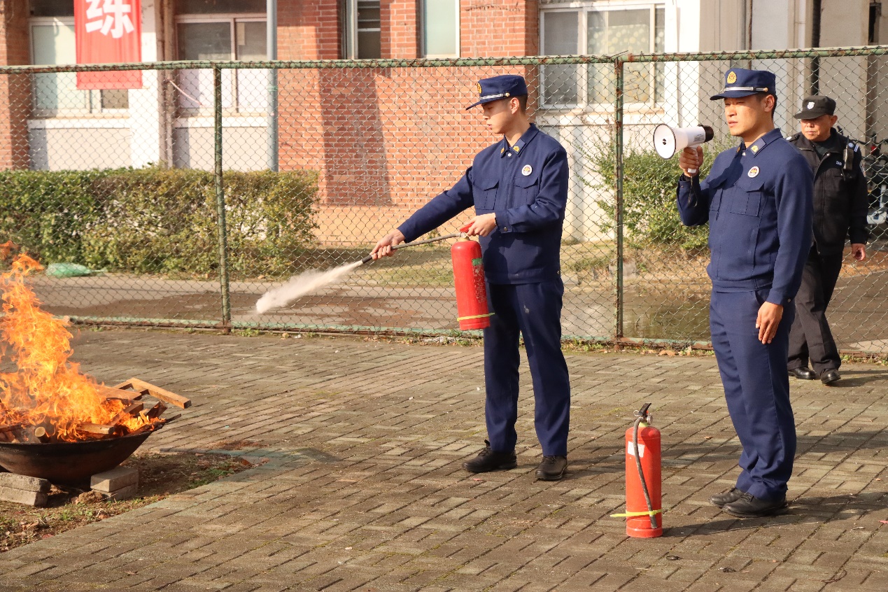随后,两名消防员现场讲解、演示了灭火器的正确使用方法。