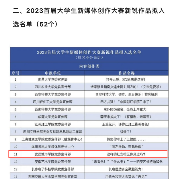 新闻网讯(高级记者 张栋萍)11月29日,在2023年首届大学生新媒体创作大赛中,我院党委宣传部融媒体中心成员周博文、蔡海燕和张羽豪创作的内容创作类作品《这样的红安校区你见过吗?》荣获新锐作品奖。