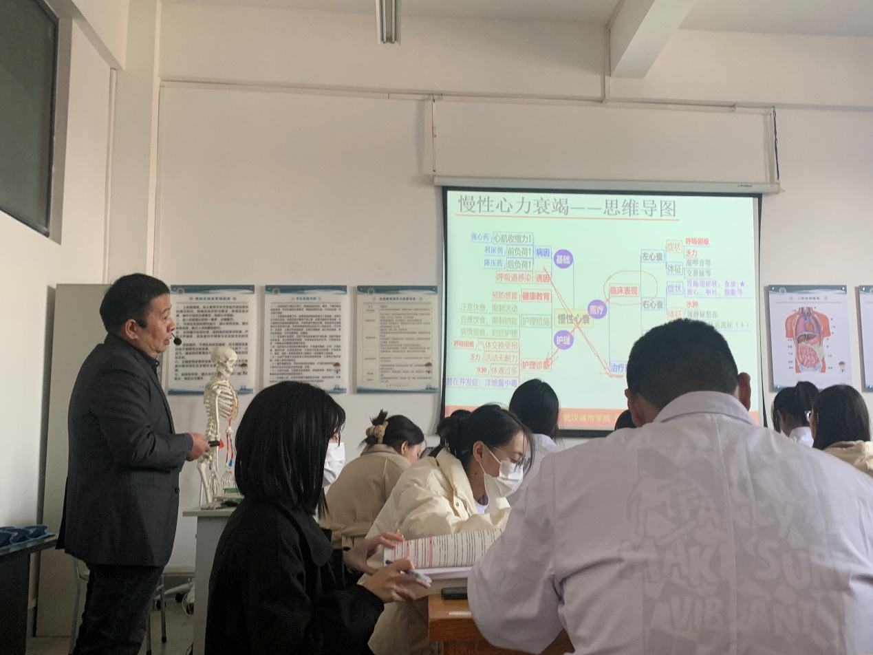 12月6日下午,我院医学部副教授周铁波如往常一样提前来到F507实验教室,为护理学班的学生们做好《内科护理学》课程的授课准备。“同学们,我说的做‘减法’是为了帮助你们知识点背诵,切记不要在处理病人工作的时候做减法,我们需要的是面面俱到并且对病人负责!”学生们不约而同答道:“明白”。课堂气氛热烈,充满激情与活力。