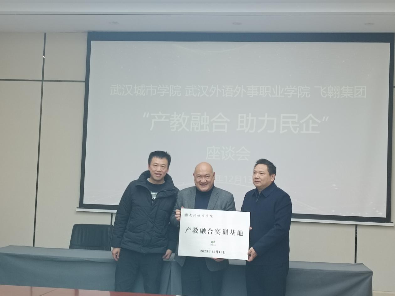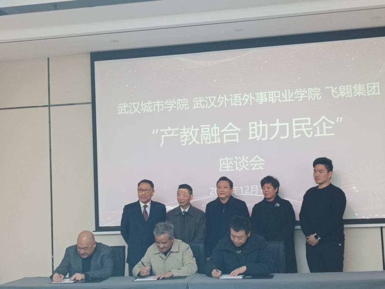 新闻网讯(记者袁晚露)为推进校企深度合作,助推双方事业高质量发展,12月13日下午,我院院长陈建勋、党委书记肖军、副院长刘丹一行6人前往飞翱集团参加“产教融合 助力民企”座谈会,与飞翱集团、武汉峰源中心签署校企合作协议,并为产教融合实训基地授牌,校企对接会同期举行。
