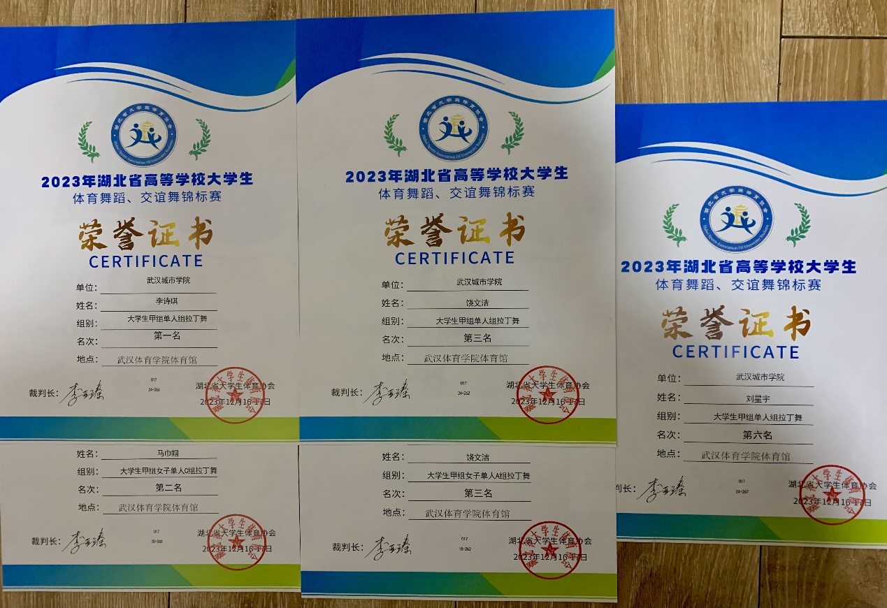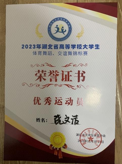 新闻网讯(通讯员胡萍)12月16日至17日,由湖北省大学生体育协会主办、武汉体育学院承办的2023年湖北省高等学校大学生体育舞蹈、交谊舞锦标赛在武汉体育学院体育馆隆重举行。本次比赛吸引了武汉大学、华中科技大学、华中师范大学等47所高校近千名运动员参赛。经过激烈角逐,我院体育舞蹈队分别在大学生甲组单人拉丁舞(男女混组)比赛中获得1金1铜及第六名、大学生甲组女子单人C组拉丁舞比赛中获得1银、大学生甲组女子单人A组拉丁舞1铜及第八名的好成绩。医学部学生饶文洁获得大赛“优秀运动员”称号。