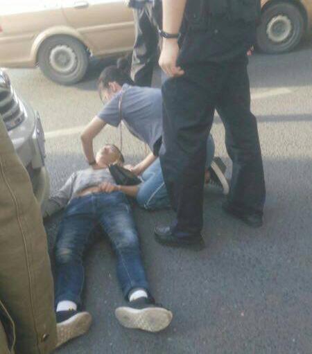 长江日报讯(记者 杨佳峰 通讯员 杨军霞)10月2日下午,循礼门地铁站J口发生一起坠楼事件,一名穿着普通的中年男子突然从高处坠落在一辆正常行驶的面包车前面。面包车紧急刹车后,一名女子急忙上前双膝跪地现场抢救。