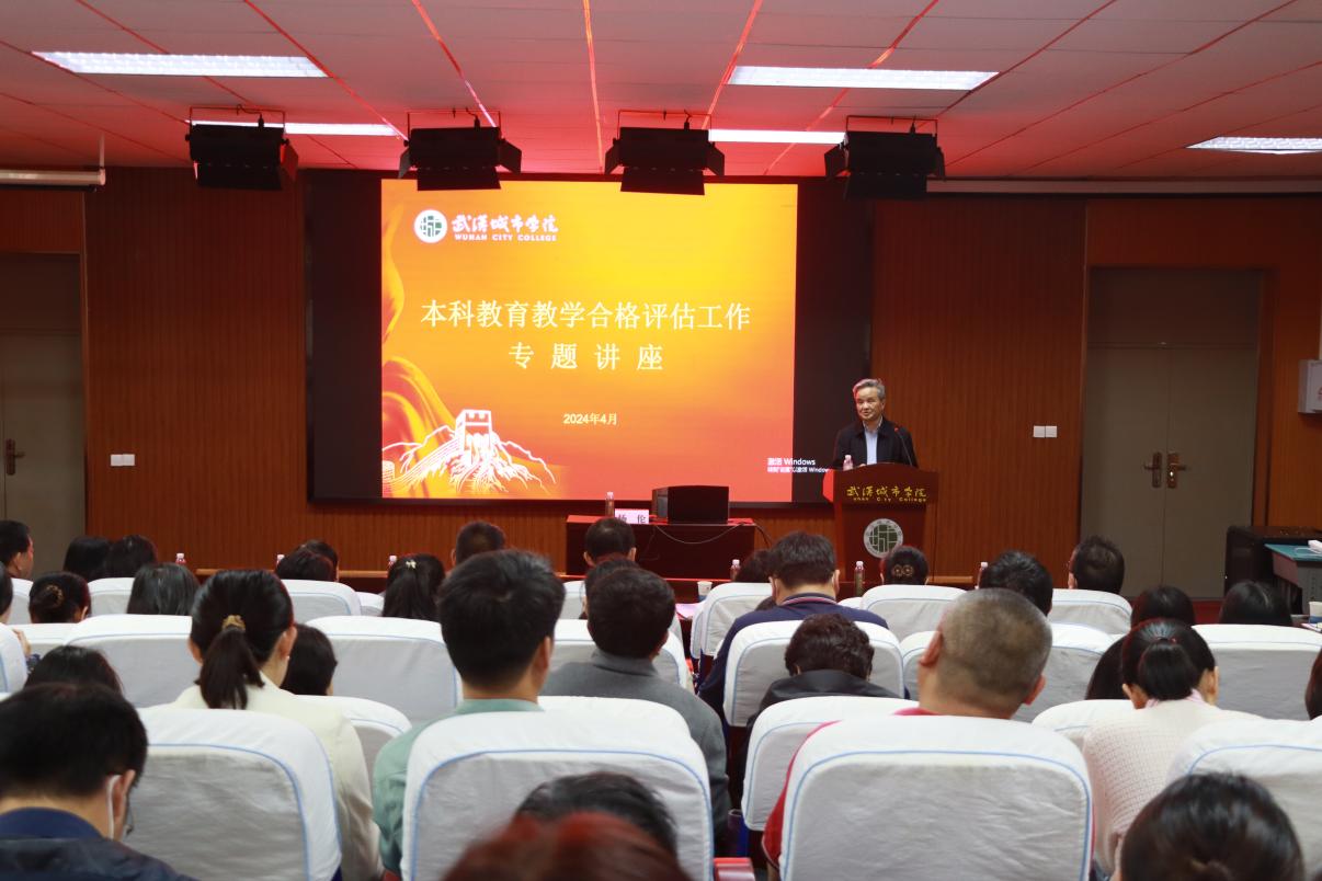 新闻网讯(实习记者 刘芷萱)4月12日下午,我院在南一(2)号报告厅举办本科教育教学合格评估工作专题讲座,特邀武汉工程科技学院党委常委、常务副校长杨伦教授做专题报告。报告会由院长陈建勋主持。