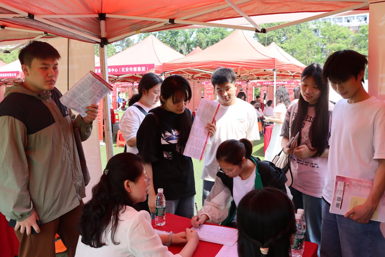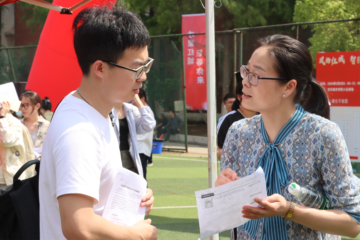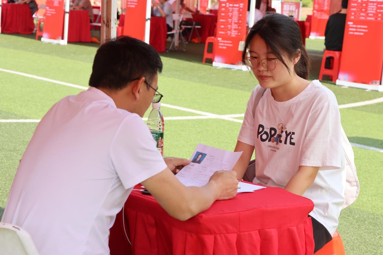新闻网讯(高级记者 蔡海燕 摄影 蔡海燕 盛鑫涛 李乔丽 刘子涵)5月8日上午,凤栖红城 智引未来——红安县2024年“才聚荆楚·百县进百校”武汉城市学院专场招聘会在我院足球场盛大举行。本次招聘会吸引了包括红安县人民医院、湖北省金圆投资开发集团有限公司、红安娃哈哈食品有限公司在内的68家企事业单位参与,涵盖了信息技术、生物、医药、环保、健康、旅游、金融、建筑、机械电子、文化旅游、教育、医疗等行业,提供了700多个就业岗位。此次活动吸引了近千名毕业生参与,其中248名学生达成就业意向,20名学生现场签约。