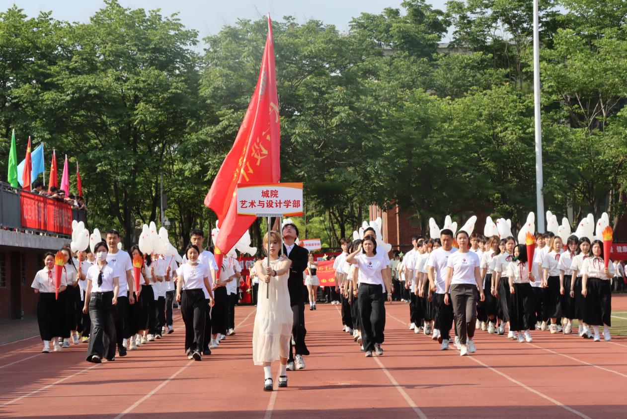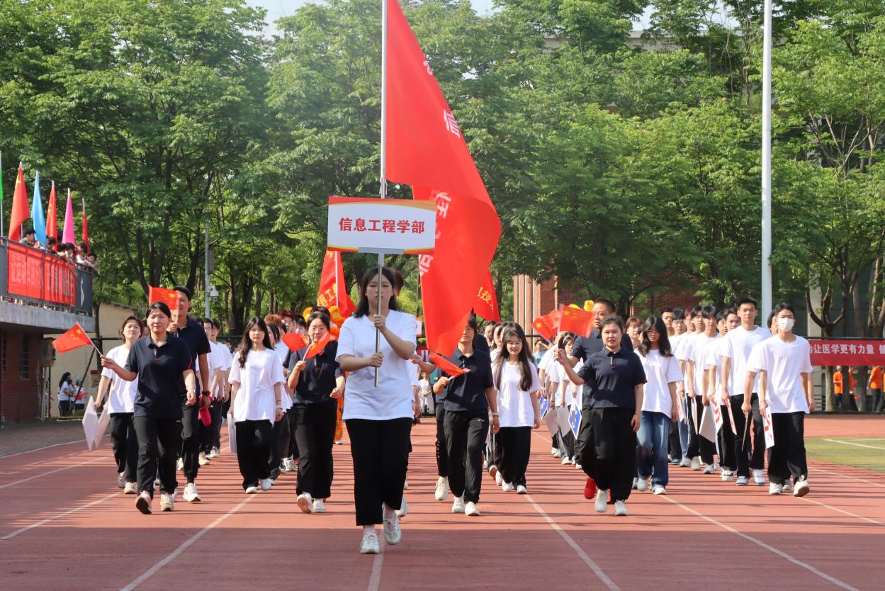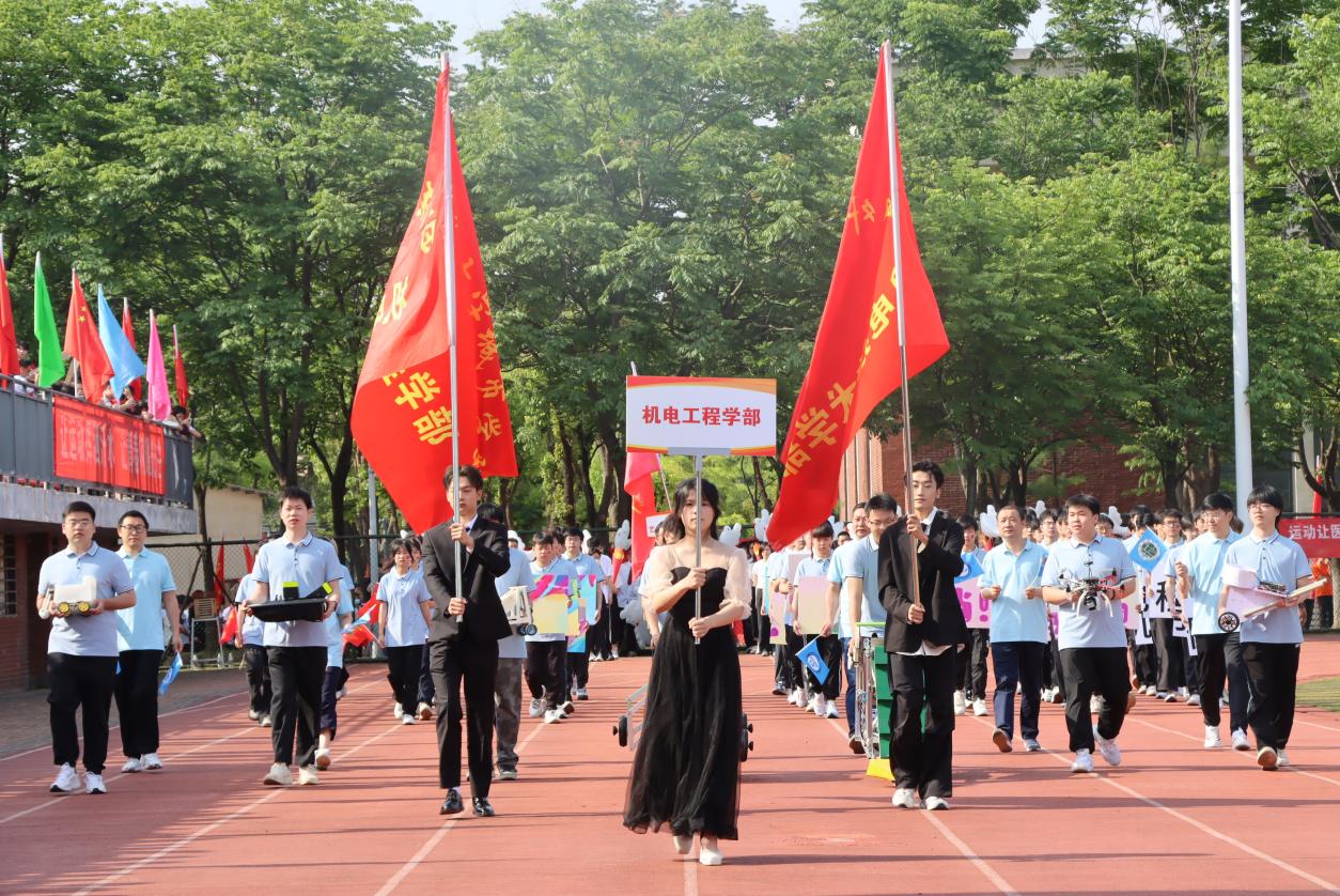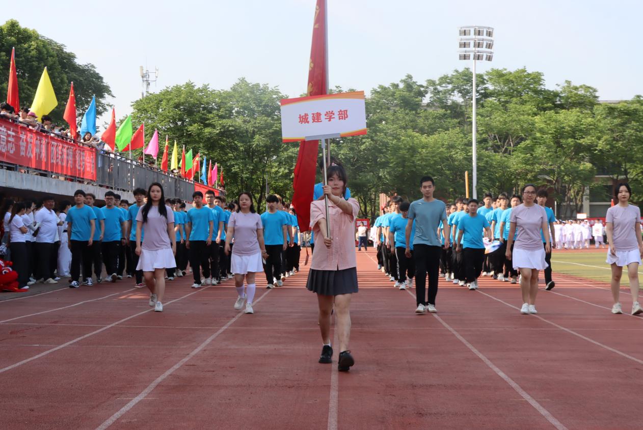 迎着微风,伴着朝阳,经济与管理学部、城建学部、医学部、外语学部、信息工程学部、机电工程学部、艺术与设计学部由辅导员和学生组成的方阵各自巧妙地将本专业特色融入方阵设计当中,他们身着独具特色的服装,手持特制的道具,迈着铿锵有力的步伐,高喊激昂的口号依次入场,接受主席台的检阅。整齐的队伍、富有创意的入场方式充分展现了我校师生奋勇争先的良好精神面貌。