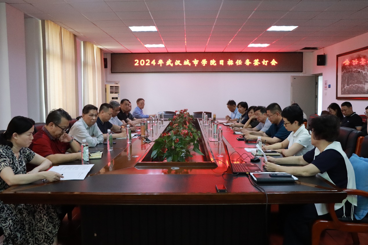 新闻网讯(记者 寇礼冉 实习记者 刘芷萱)5月23日下午,我校在行政楼A315会议室召开2024年学校目标任务签订会。校长陈建勋、党委书记肖军、副校长王军、人力资源总监刘汛汛及各职能部门负责人、各学部负责人参加会议。会议由刘汛汛主持。