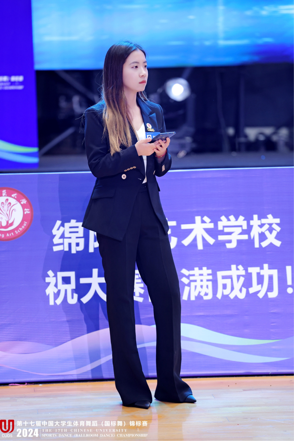 我校体育舞蹈代表队胡冰砚作为裁判员参与本次国家级赛事的执裁工作,这是首次我校裁判执裁全国赛事。在本次比赛中,胡冰砚以良好的道德风尚和专业的裁判素质,赢得了高度认可。