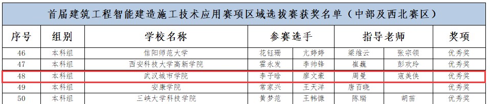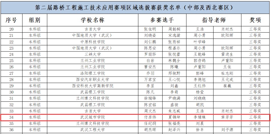 新闻网讯(记者 吕妍)在2024年一带一路暨金砖国家技能发展与技术创新大赛(以下简称“大赛”)中,我校城建学部学子在路桥工程施工技术应用赛项上获得中部及西北赛区二等奖1项、三等奖1项、优秀奖1项,在建筑工程智能建造施工技术应用赛项上获得三等奖1项、优秀奖3项,3组队伍进入到国家级赛事。