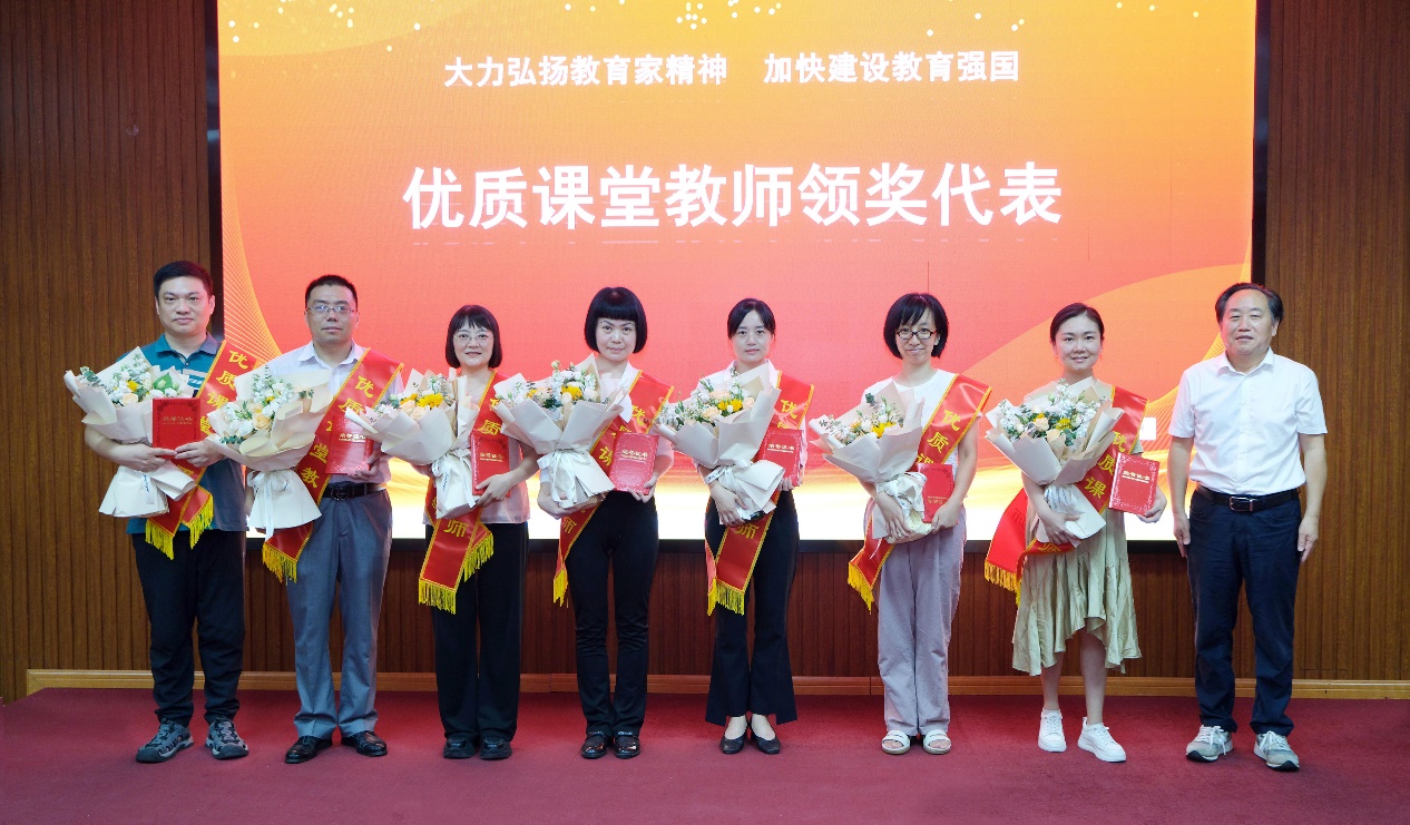 副校长宣读《关于公布2023年“优质课堂教师”评选结果的通知》,授予蔡洲等30人“优质课堂教师”称号。