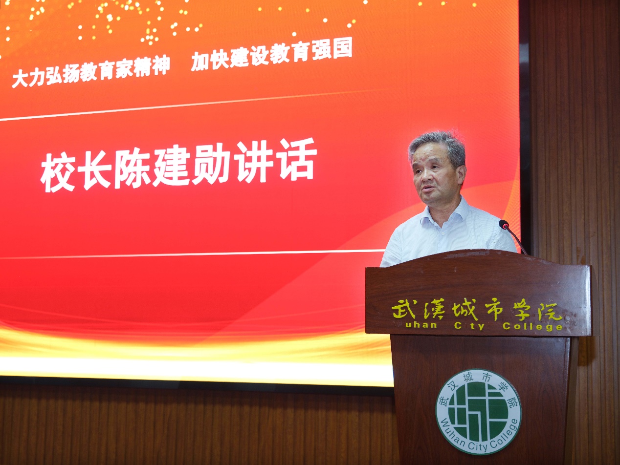 校长陈建勋代表学校向全体教职工致以节日的问候,向受到表彰的先进个人表示热烈祝贺。他在讲话中强调指出,教师群体中涌现出一批优秀教师,他们具有心有大我、至诚报国的理想信念,言为士则、行为世范的道德情操,启智润心、因材施教的育人智慧,勤学笃行、求是创新的躬耕态度,乐教爱生、甘于奉献的仁爱之心,胸怀天下、以文化人的弘道追求,展现了中国特有的教育家精神,为新时代加强教师队伍建设提供了根本遵循,赋予了新时代人民教师崇高使命。回顾过去一年,他高度评价了学我校全体教职工的不懈努力和卓越贡献,充分肯定了全体教职员工始终坚守“立德树人”初心与使命,以教育家的情怀和担当,不断探索实践,书写了一页页教书育人的新成就。教师们将平凡的讲台视为实现自我价值的广阔天地,他们以高度的责任感和使命感,将日常的每一份努力都倾注到学生的成长之中,将琐碎的工作转化为推动教育的强大动力。这一切生动实践,都牢固确立了教学在学校工作中的中心地位。 陈建勋强调要始终秉持“育人为本、质量立校、特色发展、争创一流”的办学理念,全力以赴迎接2026年学校本科教育教学合格评估工作,促进学校高质量建设发展,逐步将学校建成高水平民办应用型大学,同时进一步推进学校硕士授权单位和硕士授权点的申报与建设。同时,他在讲话中指出,教师是立教之本、兴教之源。强国必先强教,强教必先强师。教师节设立40年来,广大教师应牢记为党育人、为国育才使命,扎根三尺讲台,潜心教书育人,始终同党和人民站在一起,以赤诚之心、奉献之心、仁爱之心投身教育事业。希望全体教师和教育工作者要以受表彰的先进个人为榜样,深刻领悟“两个确立”的决定性意义,增强“四个意识”,坚定“四个自信”,做到“两个维护”,弘扬践行教育家精神。全体教职工要继续发扬优良传统,勇于创新、敢于担当,为培养更多德智体美劳全面发展的社会主义建设者和接班人而不懈奋斗。