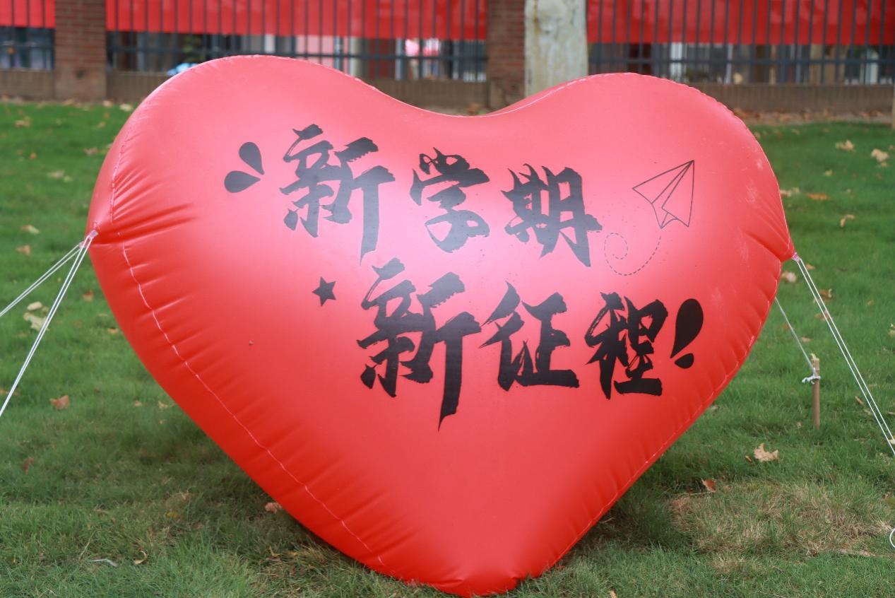 “新”意满满,上午七点三十分,全体迎新老师及学生志愿者在自己的岗位上待命,用饱满的热情与细心的讲解迎接着每一位新生。“欢迎新同学”,进入校门后,醒目的展板首当其冲。立体爱心气球、打卡墙、惊喜盲盒等等,吸引大家拍照打卡,为新生们带来满满仪式感。