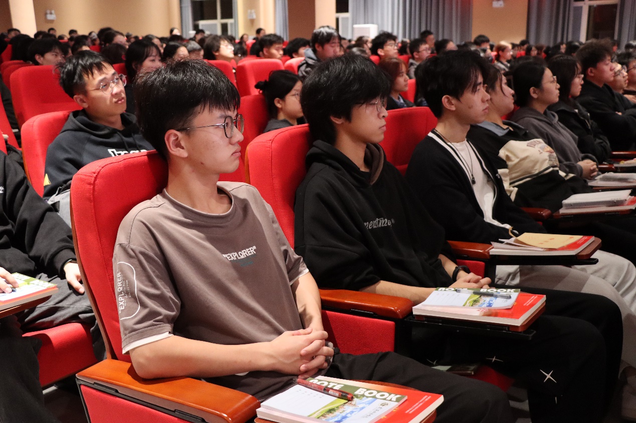 关晓玲宣读党校开班决定。艺术与设计学部2023级环境设计一班田厚启同学作为全体学生代表上台发言。他表达了参与培训的初衷及对党的深刻认知,并号召全体学员以党员标准严格要求自身,持续提升政治素质与理论水平。