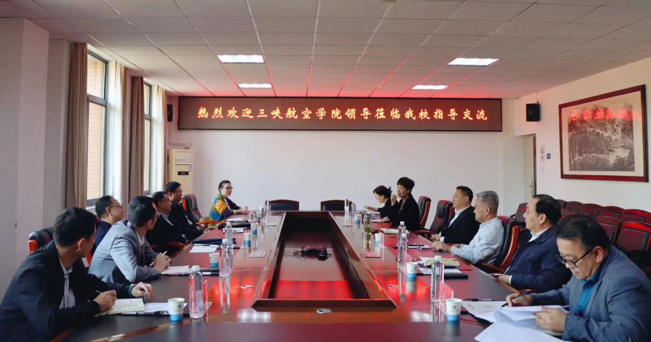 新闻网讯(记者 周洁)为加强学校之间的交流与合作,共同研讨教育教学管理经验,11月5日,三峡航空学院副校长赵新泽、曾良才、何跃春等领导带领办公室、教务处、学生工作处一行来我校交流座谈。学校校长陈建勋、党委书记肖军、工会主席吴翠红出席,学校校长陈建勋主持交流座谈会。