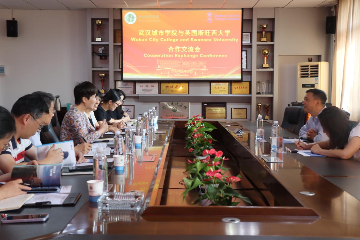 吴翠红对斯旺西大学代表来访表示热烈欢迎。她从发展历史、办学规模及优势专业等方面简单介绍了我校的办学情况。唐俊对我校的热情招待表示感谢,他简要介绍了英国斯旺西大学的教学背景、优势专业以及在国际交流方面所取得的成就,并表达了对与我校开展合作的期待。