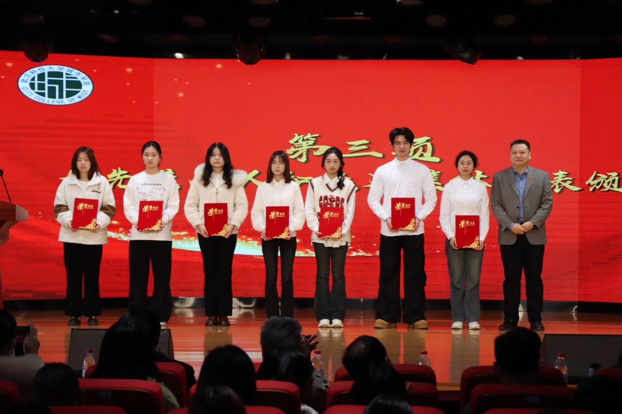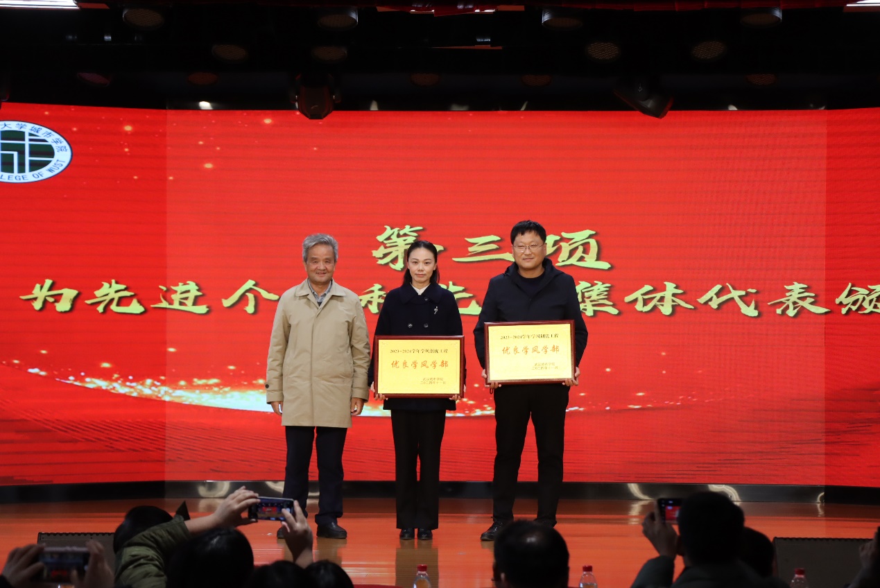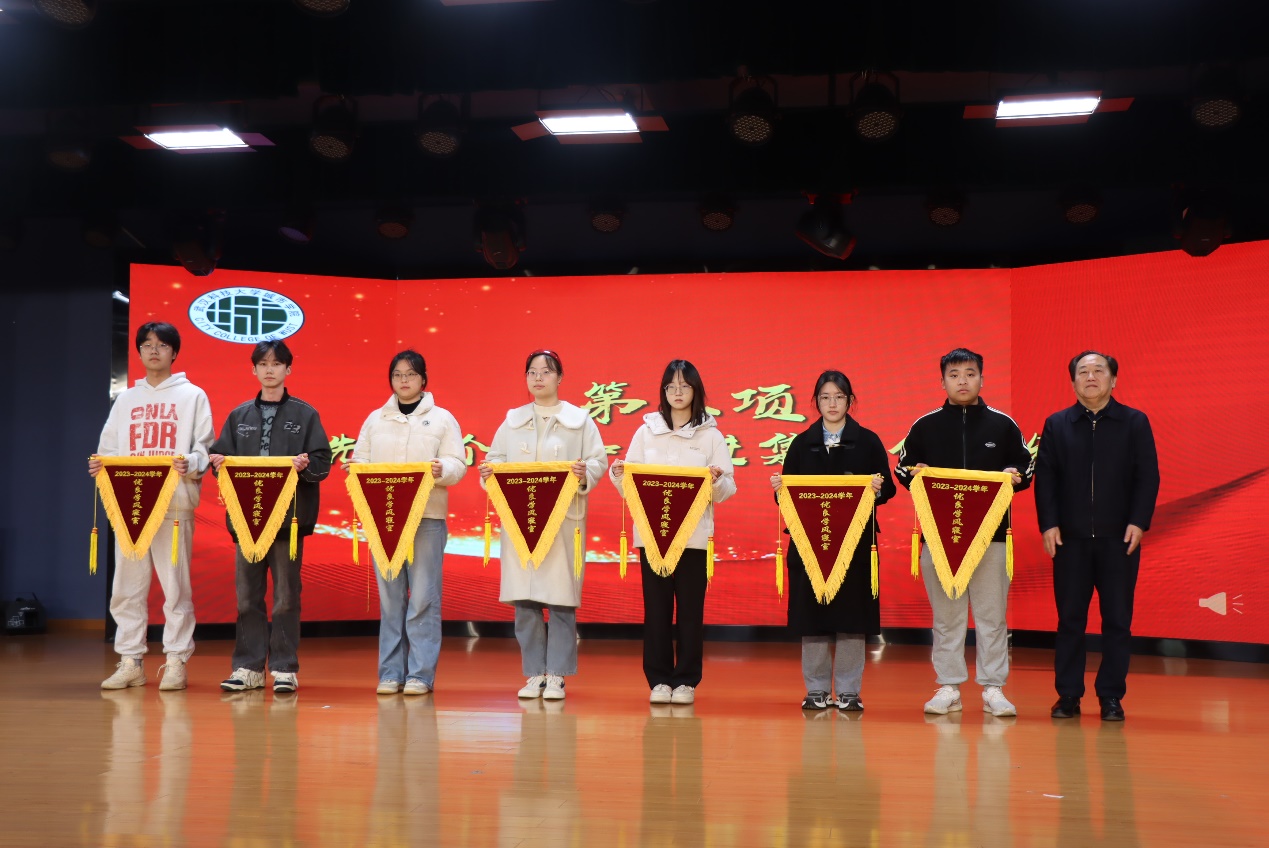 副校长宣读《武汉城市学院关于表彰2023-2024学年度学生先进个人的决定》《武汉城市学院关于表彰2023-2024度学年学风创优工程先进集体的决定》,对先进个人与先进集体进行表彰。