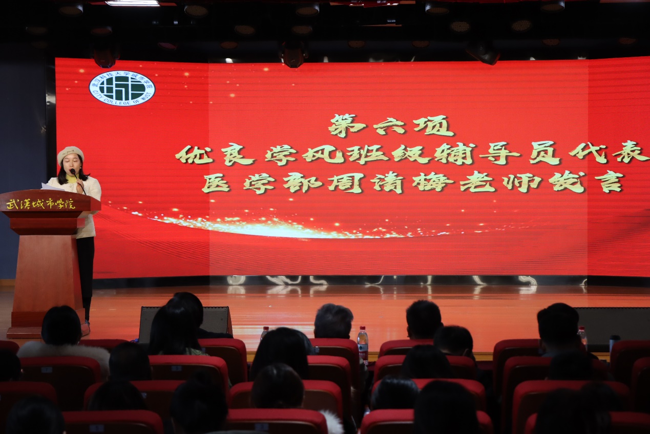 医学部护理8班辅导员周清梅老师作为“优良学风班级”辅导员代表上台发言。她表示,在打造优良学风班级的过程中,护理8班始终坚守学风建设,从五个维度全面发力:一是营造浓郁的学习氛围;二是充分发挥班级集体的力量;三是高度重视每位同学的个性发展;四是助力同学们精准定位自我;五是优化管理模式,强化沟通协调机制,实现了班级的全面发展与进步。
