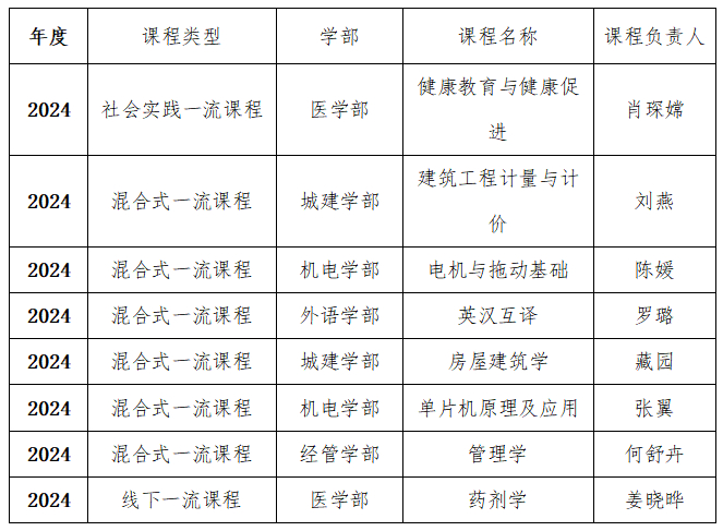 新闻网讯(通讯员 曹媛)近日,湖北省教育厅正式公布省级一流课程认定结果(鄂教高函[2024]25号),我校成绩卓越,共有 8 门课程成功获批省级一流课程,其中1门社会实践一流课程、6门混合式一流课程、1门线下一流课程。此次获批数量比去年增加了3门,获批类型更有所拓展,实现了社会实践类一流课程零的突破。