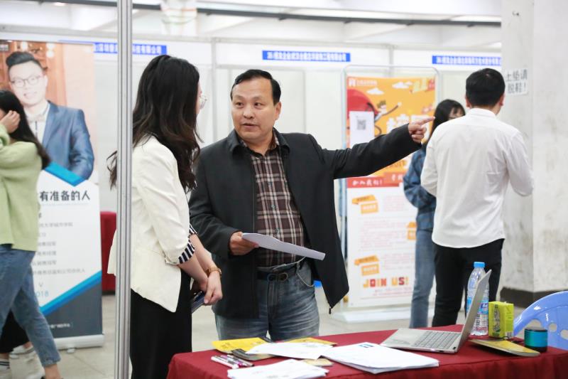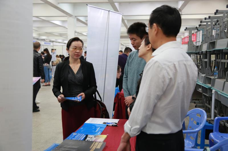 学部领导在招聘会现场,与企业负责人深切交流