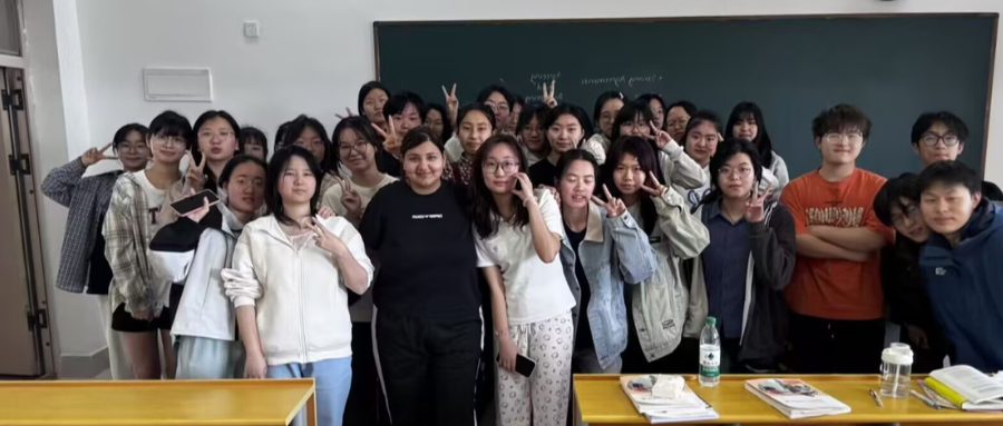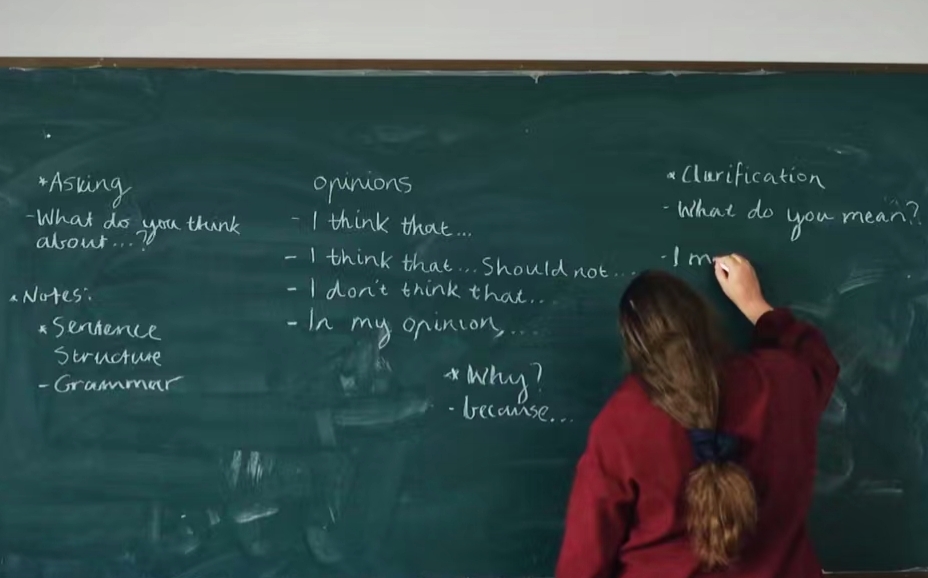 "Don't worry. We can use a simpler word instead!"Marianne微笑着放慢语速,用手势辅助解释一个生词。来中国仅半年的她,深谙"因地制宜"的教学智慧——她巧妙地用基础、日常的词汇来替代那些难以理解的复杂表达。在板书方面,她一丝不苟,确保自己写在黑板上的每一个重点都与课本中的关键内容完全一致。令人惊讶的是,她竟然记住了班上所有学生的英文名。她能毫不犹豫地叫出每个学生的名字,课堂讨论时Marianne常蹲下来与坐着的同学们平视交流,毫无距离感地交流互动。让每个学生都感到自己被关注、被重视。