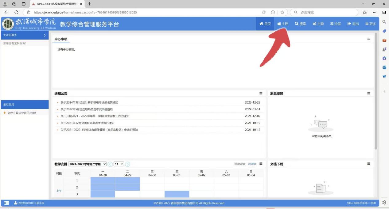 搜索网页 https://jw.wic.edu.cn/cas/login.action进入“武汉城市学院教学综合管理平台”。