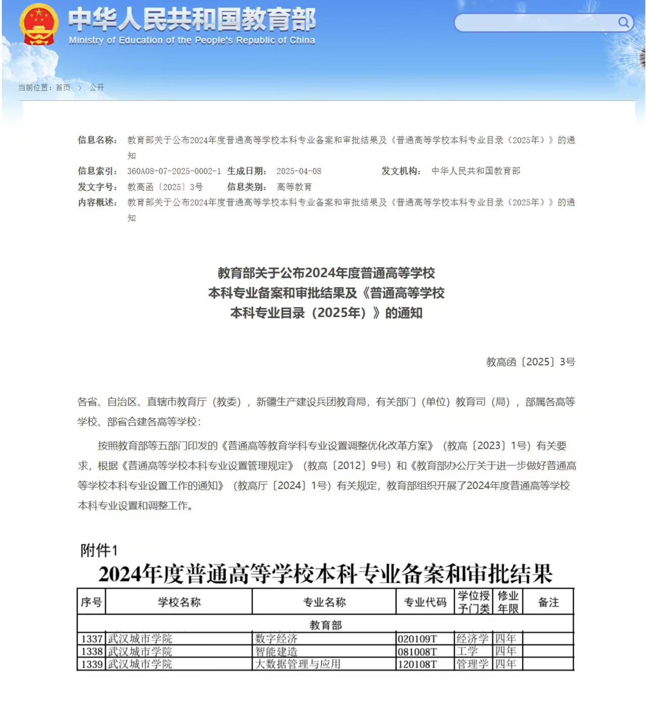 新闻网讯(记者 唐欣)近日,教育部公布2024普通高等学校本科专业备案和审批结果确定我校新增数字经济、智能建造、大数据管理及应用3个本科专业,已明确今年招生。