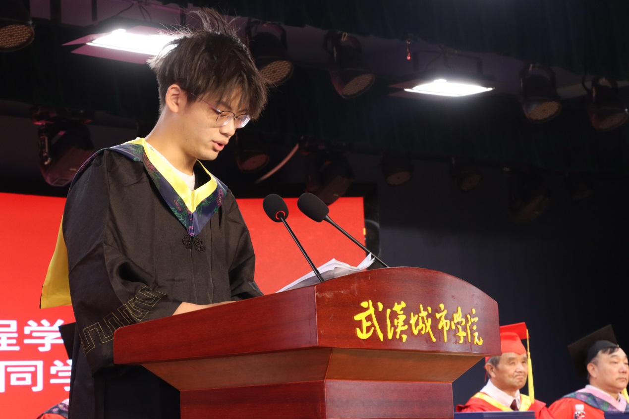 在优秀毕业生代表发言环节,机电工程学部2021级电气自动化专业的徐意皓同学分享了自己在大学四年的成长与收获,表达了对母校、老师和同学们的深深感激之情,以及对未来的无限憧憬。