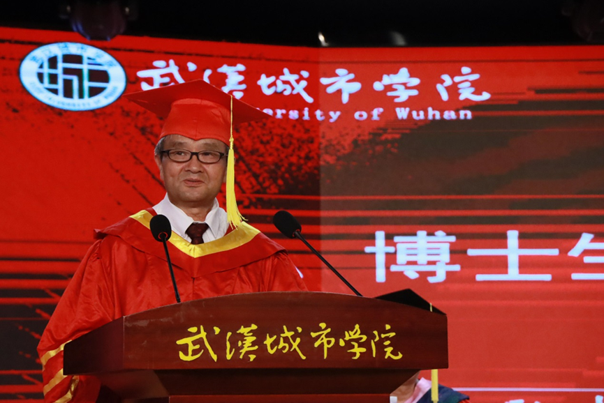 校长陈建勋代表学校向顺利完成学业的2025届全体毕业生表示最热烈的祝贺!向为他们的成长倾注心血的老师们、默默支持的家长们致以最诚挚的敬意和感谢!本届毕业生共5862人,其中389人荣获“优秀毕业生”称号。获得挑战杯一等奖的全国民办高校中三个学校之一、全国民办高校前列的考研率、学科竞赛佳绩等成就为母校赢得荣誉。校长高度评价学子贡献,指出他们以活力与拼搏推动校园环境优化、学风提升,形成“文明有礼、谦谦君子、窈窕淑女”的校园氛围,助力学校声誉跃升。以“鸿雁”为喻,勉励毕业生从东湖落雁岛启程,心怀梦想、笃行不怠,将个人成长融入国家发展,在岗位上勇担责任、贡献才智。他寄语毕业生“眼中有光、行动有方”,祝愿前程如星辰大海般广阔,人生繁花似锦。