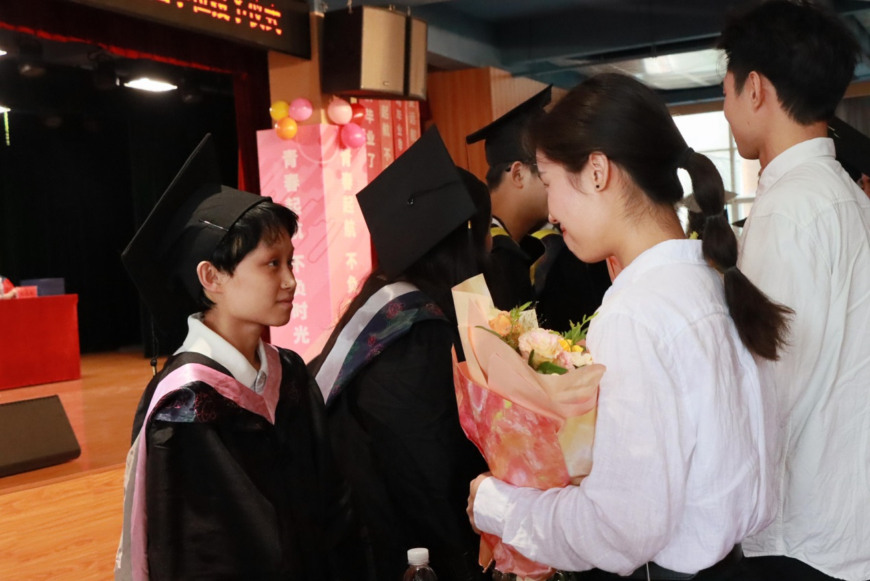 优秀毕业生代表向教师代表献花谢师恩,一束束鲜花承载着毕业生们对老师的敬意和感激。