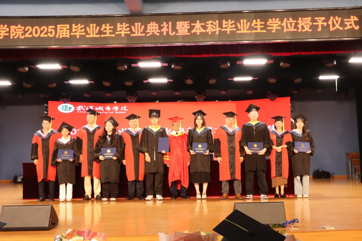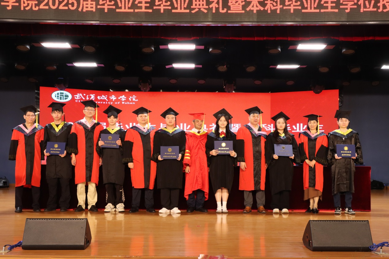 在最后庄重的学位授予环节,2025届毕业生代表依次登台。校领导逐一为其颁发学位证书、拨穗正冠并合影留念,定格下这庄严的学术时刻,也为毕业生们四载青春岁月画上了圆满句点。