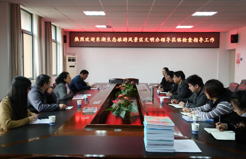 新闻网讯(记者 倪佩芬)11月15日上午10:00,东湖生态旅游风景区文明办孙炜主任等一行人莅临我院,在行政楼A315会议室检查指导我院文明创建工作。
