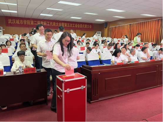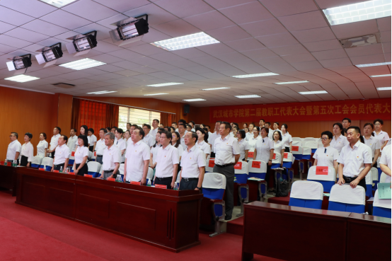 在顺利完成各项议程后,第二届教职工代表大会暨第五次工会会员代表大会在《国际歌》中顺利闭幕。