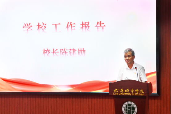 校长陈建勋作学校工作报告。他回顾了学校2014年4月召开第一届教代会以来的发展历程。他指出,十一年来,学校始终坚持党的全面领导,坚持社会主义办学方向,围绕地方性、应用型办学定位,落实立德树人根本任务,服务国家地方经济社会发展,培养担当民族复兴大任的时代新人,推进学校各项事业持续健康发展。